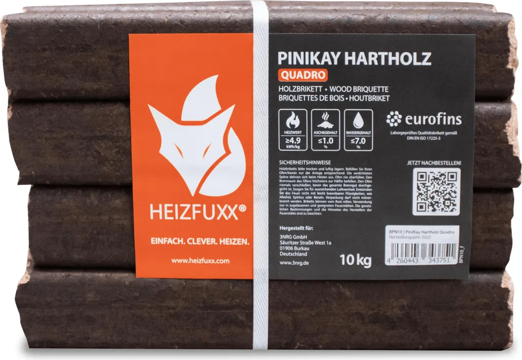 Die HEIZFUXX® PiniKay Hartholzbriketts überzeugen durch Form, Funktion und Umweltbewusstsein. Ihre charakteristische viereckige Form mit mittigem Zugloch sorgt für optimale Luftzirkulation, ein kraftvolles Flammenbild und schnelles Anheizen. Die hohe Energiedichte garantiert eine langanhaltende.